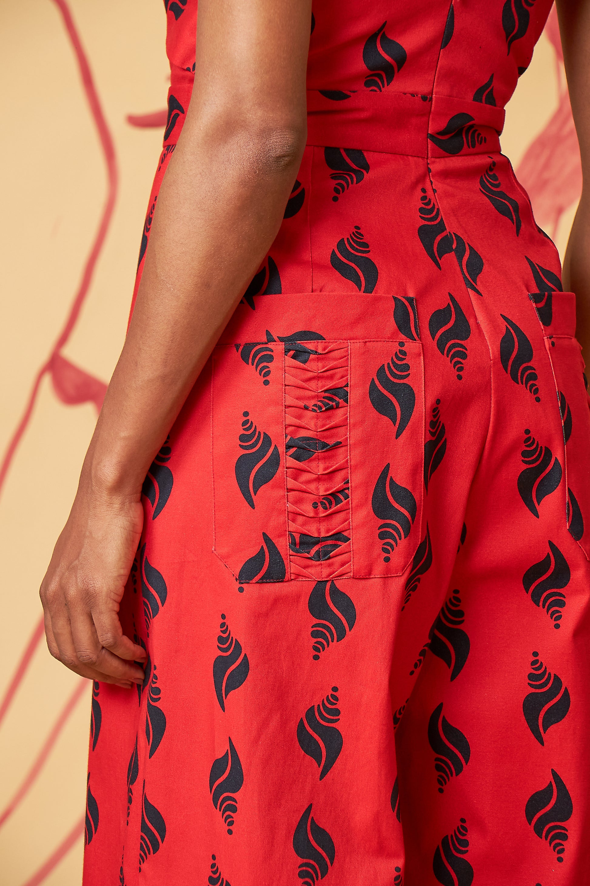Jumpsuit made of twill cotton, long length, straight fit, side pockets, pleats at the bust and exclusive Le Soleil shell print for the Secret Life of Shells collection.
