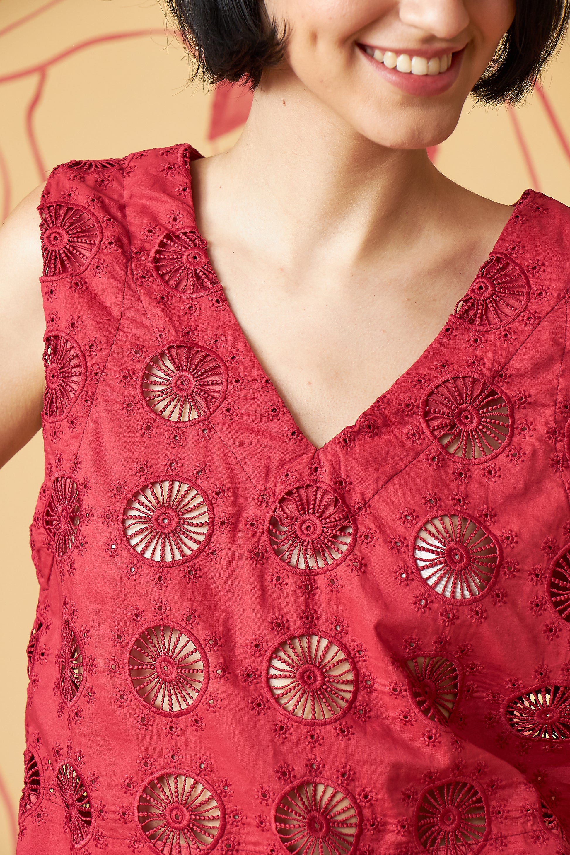 Blouse made of cotton with laise fabric, straight modeling, V-neckline and back closure with personalized buttons.