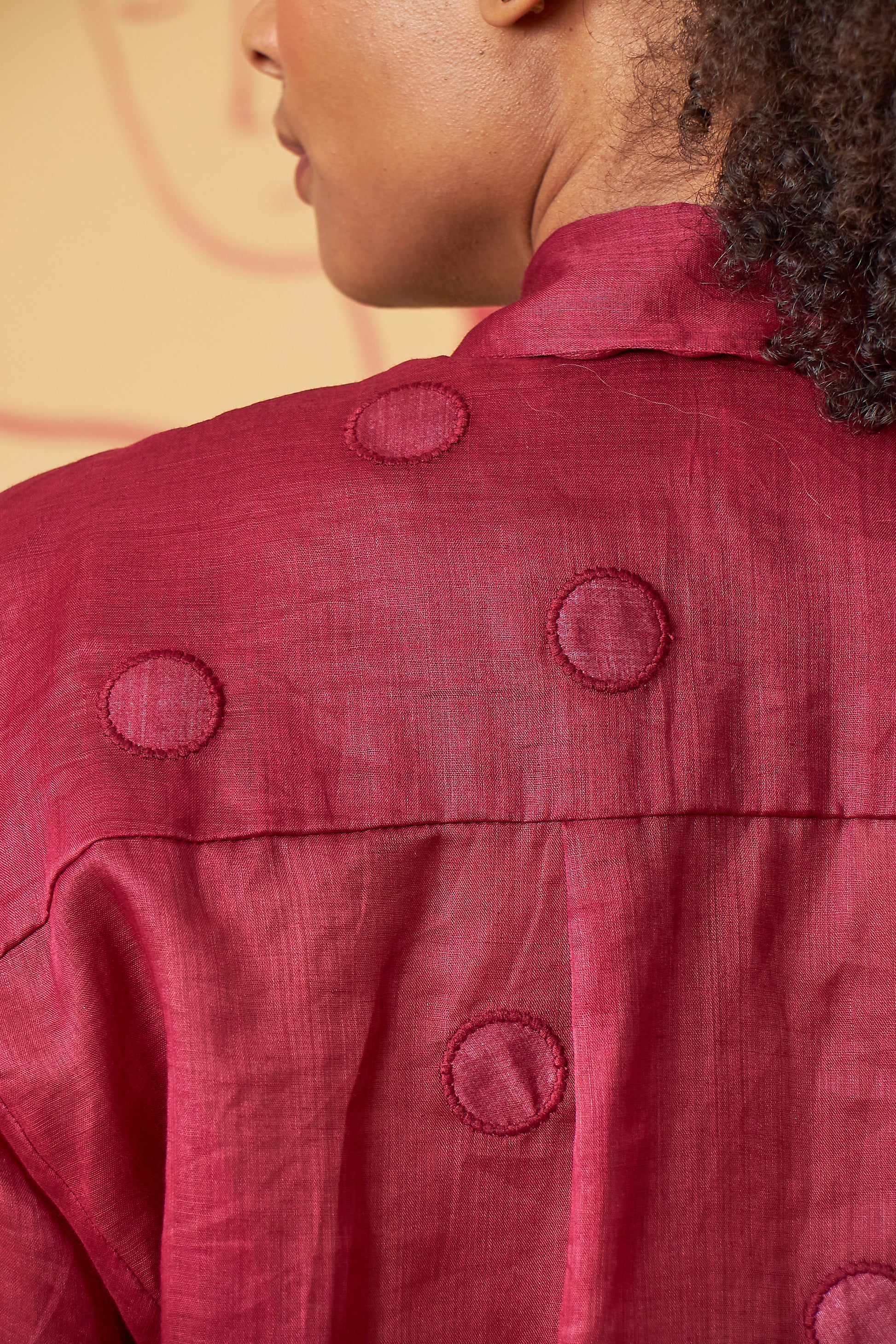 Shirt made in linen voile, straight cut, pocket on the upper front and long sleeves. The piece has application of the fabric itself in circular shapes.